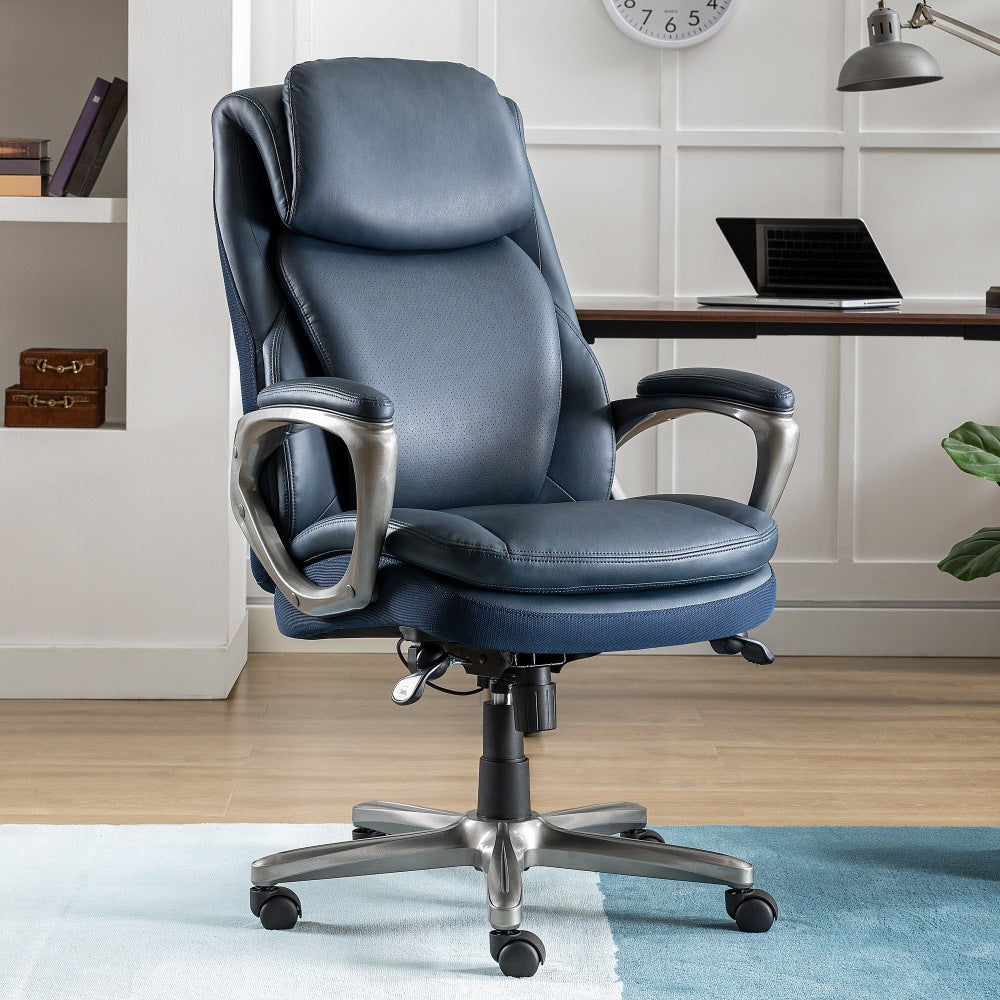 Serta Smart Layers Arlington AIR Ergonomic Bonded Leather High-Back Executive Chair, Navy/Silver