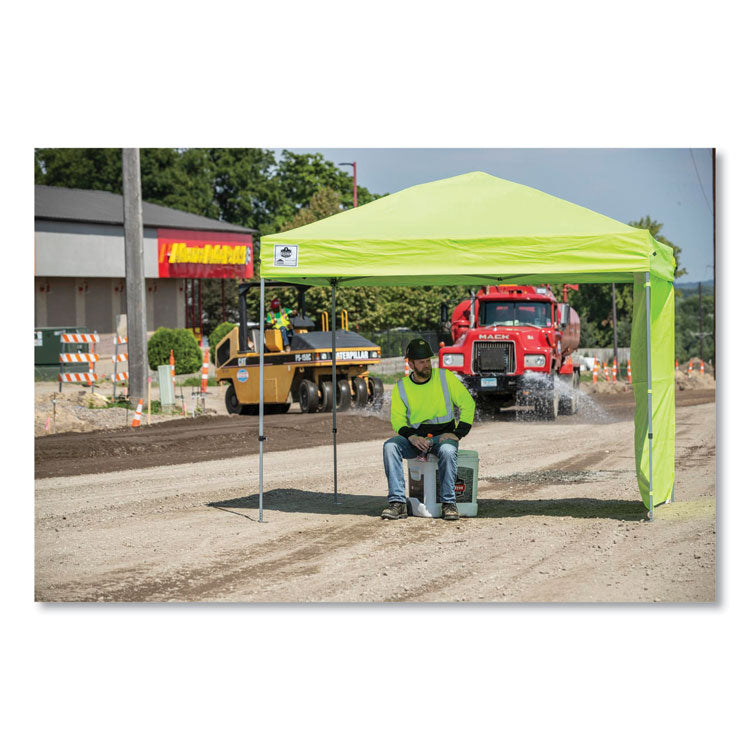 The SHAX 6010C Replacement Canopy is lightweight, durable and used to fit the 10 ft x 10 ft SHAX 6010 tent frame. A great way to change out worn and faded old canopy tops to keep workers in the shade and sheltered from the weather. Constructed with thick, high-quality 210 denier polyester material with waterproofing polyurethane coating (PU) and UV treatments, as well as reinforced corners to withstand tough conditions. The hi-vis lime and silver coating provide increased visibility on busy job sites or at events.