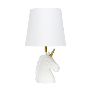 Simple Designs Sparkling Unicorn Table Lamp, 16inH, Gold/White