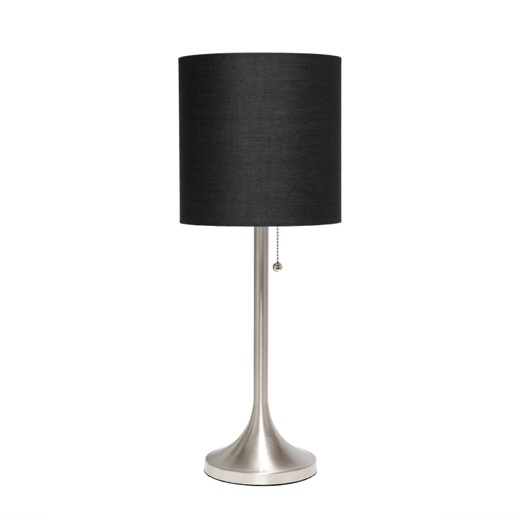 Simple Designs Tapered Table Lamp, 21inH, Black Shade/Brushed Nickel Base