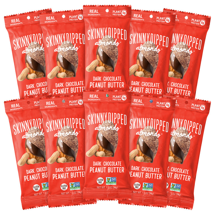 Skinny Dipped Almonds, Gluten-Free Dark Chocolate Peanut Butter, 1.2 Oz, Pack Of 10 Bags