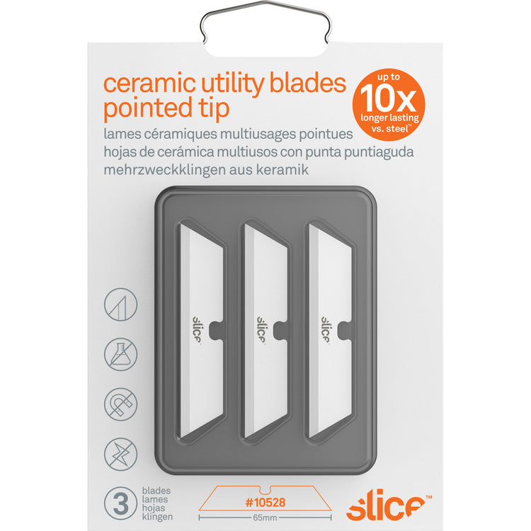 Slice Pointed Tip Ceramic Utility Blades - 2.60in Length - Pointed Tip, Non-conductive, Non-magnetic, Reversible, Retractable, Rust Resistant, Non-sparking - Zirconium Oxide - 3 / Pack - White