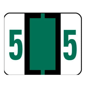 Smead BCCRN Bar-Style Permanent Numerical Labels, 5, Dark Green, Roll Of 500