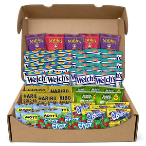 - Includes a variety of Welch's, Mott's, Black Forest, Fruit by the Foot, Annie's, Gushers and HARIBO Gummy Bears.