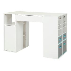 Keep your crafting supplies in a central location. This desk includes a small bin for rolls of wrapping paper, 2 rods for ribbon and 10 open storage areas for additional items and other storage options.