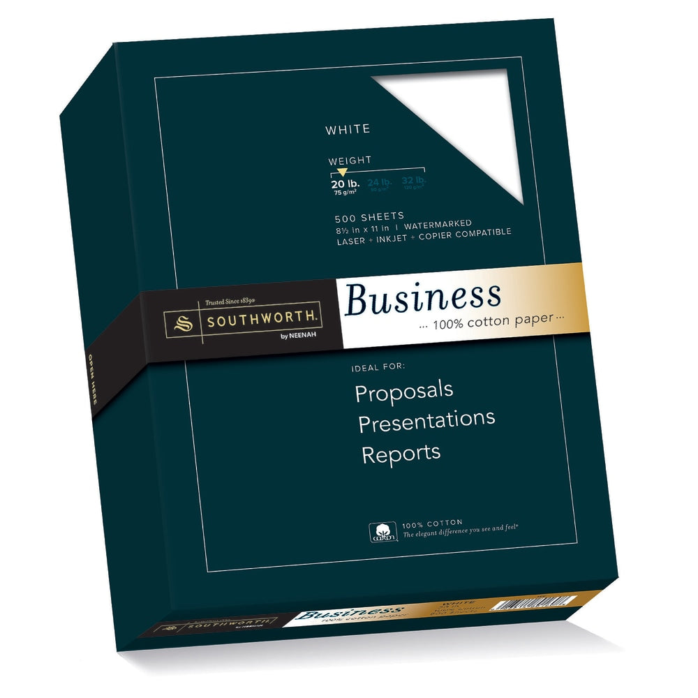 Make lasting impressions with 100% cotton business paper. This Southworth stationery and laser paper features a crisp texture for high-quality prints.