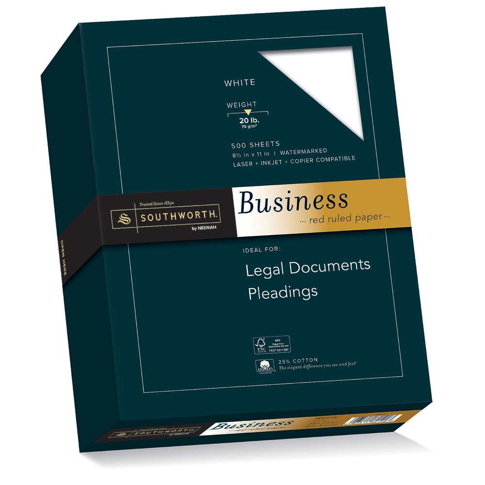 Ensure each form and letter from your office reflects your level of quality and professionalism with Southworth stationery and laser paper. Made with cotton fiber, this paper gives impact and longevity to your legal and business documents.