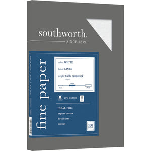Southworth 25% Cotton Linen Cover Stock, 8 1/2in x 11in, 65 Lb, White, Pack Of 100