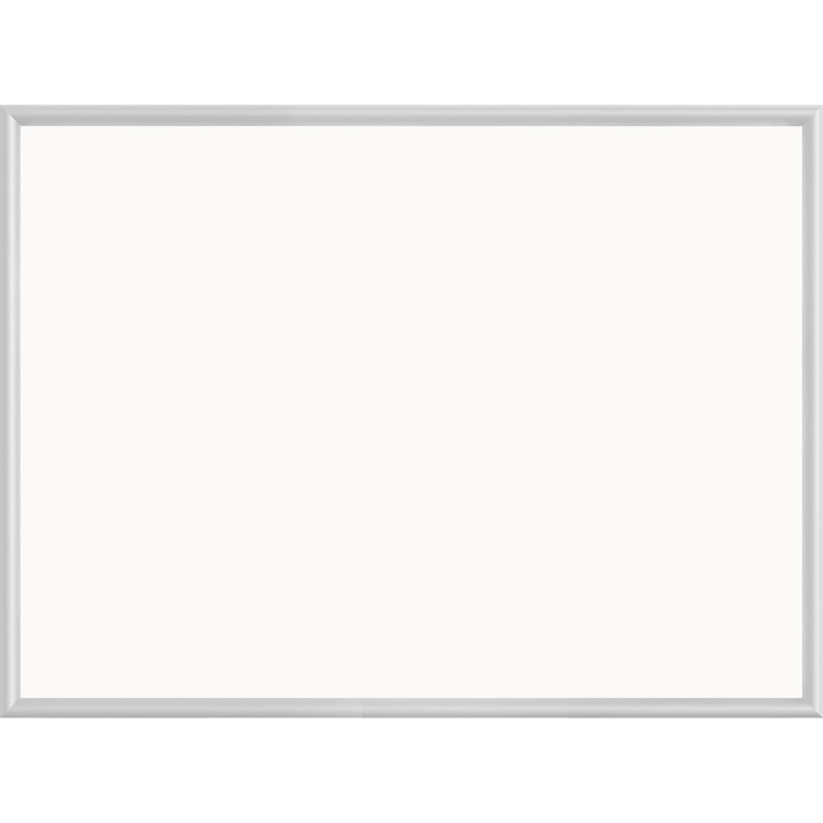 Dry-erase board features a white-coated, styrene surface that is easy to write on with dry-erase markers and just as easy to erase. Marker tray provides a convenient place to store your markers. The 3/5" (15.4mm) thick board also includes an aluminum frame and hanging hardware.