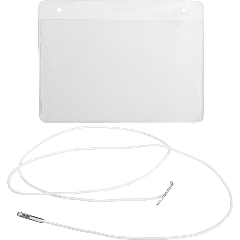 - Included elastic cord lets the badge hang comfortably around your neck.