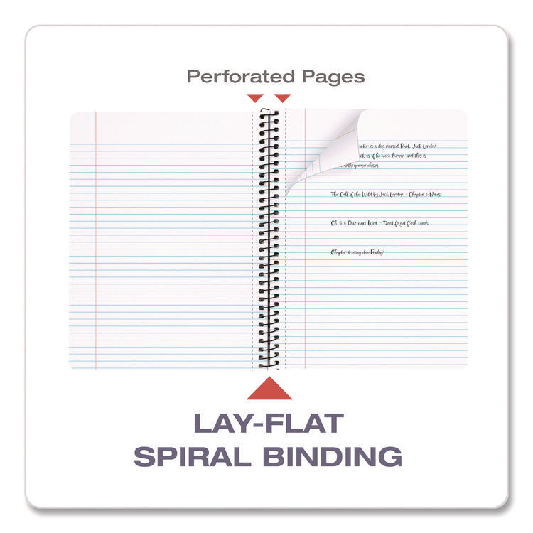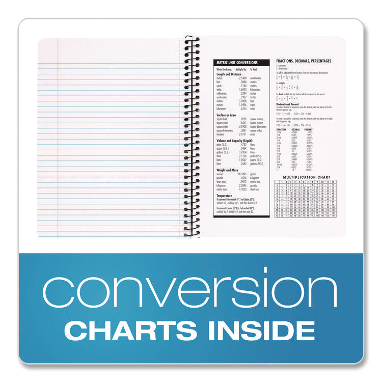 Oxford Spiralbound Composition Notebooks combine the best aspects of a spiral notebook with the school-focused design of a composition book. They're ideal as science notebooks, language-arts notebooks and personal-use journals. Thick and durable paperboard covers protect your notes, and coil-locked spiral binding allows the books to lay flat when open, while preventing snags on bags and clothing. Quality paper accommodates all pen, pencil and highlighter marks, and the inside back cover features handy conversion charts.
