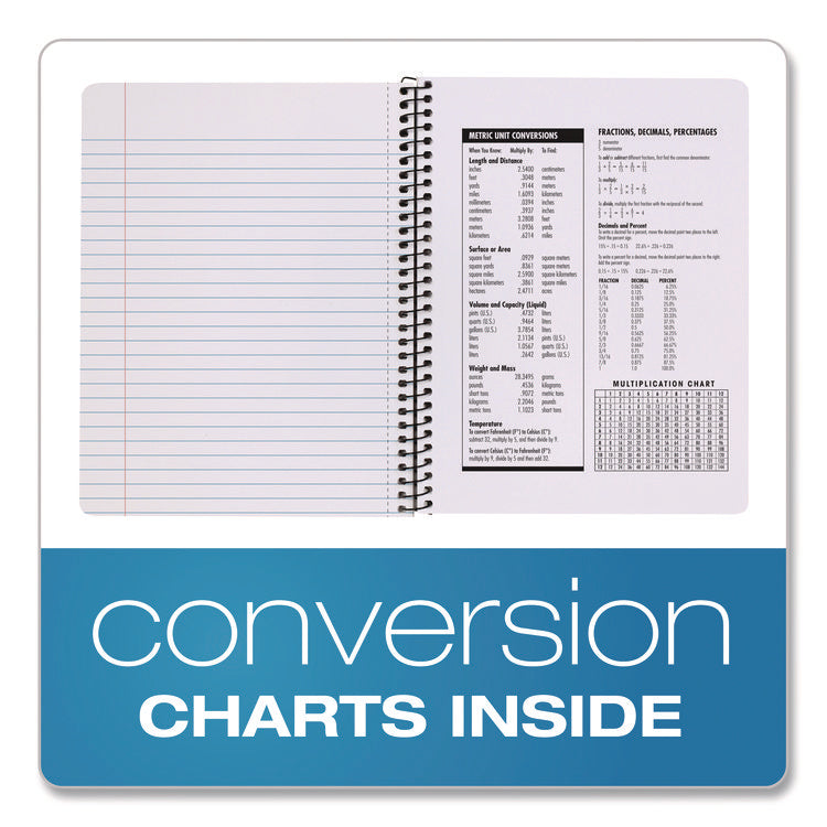 Oxford Spiralbound Composition Notebooks combine the best aspects of a spiral notebook with the school-focused design of a composition book. They're ideal as science notebooks, language-arts notebooks and personal-use journals. Thick and durable paperboard covers protect your notes, and coil-locked spiral binding allows the books to lay flat when open, while preventing snags on bags and clothing. Quality paper accommodates all pen, pencil and highlighter marks, and the inside back cover features handy conversion charts.