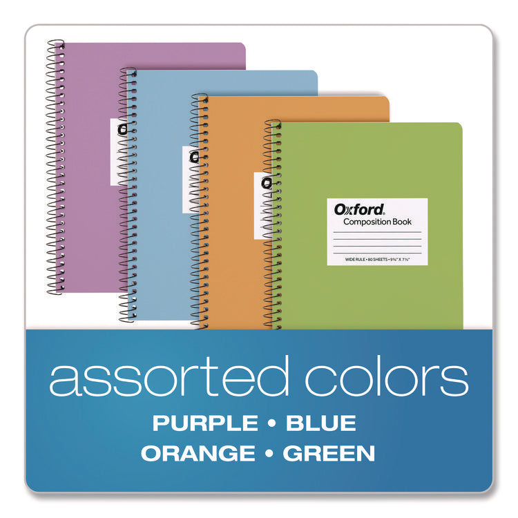 Spiralbound Composition Books, Wide/Legal Rule, Assorted Cover Colors, (80) 9.75 x 7.5 Sheets, 4/Pack