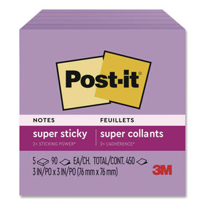 Super Sticky Notes, 3 x 3, Mulberry, 90 Sheets/Pad, 5 Pads/Pack