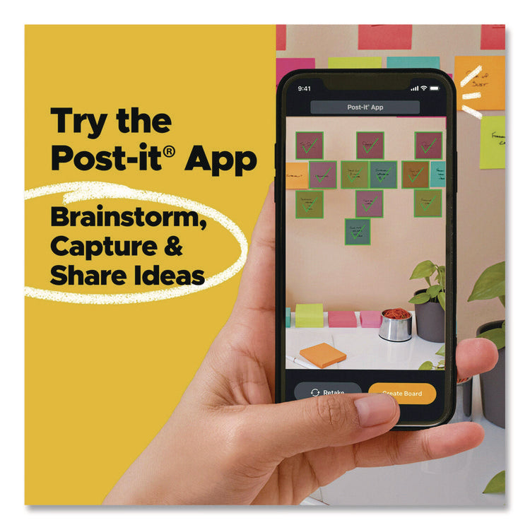 Experience the power of 2X stickiness. Super Sticky Notes stick to practically everything, everywhere! Revolutionary technology ensures your notes will stick securely to most surfaces yet remove cleanly! Versatile and essential, they're the perfect solution for lists, reminders, color-coding, labeling, brainstorming, storyboarding and even mural art. As they adhere firmly to walls, windows, doors, worksurfaces, mirrors and more, you can stick and restick these classic Canary Yellow notes wherever they're most likely to be noticed. To enhance your note-taking experience, download the free Post-it® App to your smartphone or tablet and instantly capture, save and share your important notes.