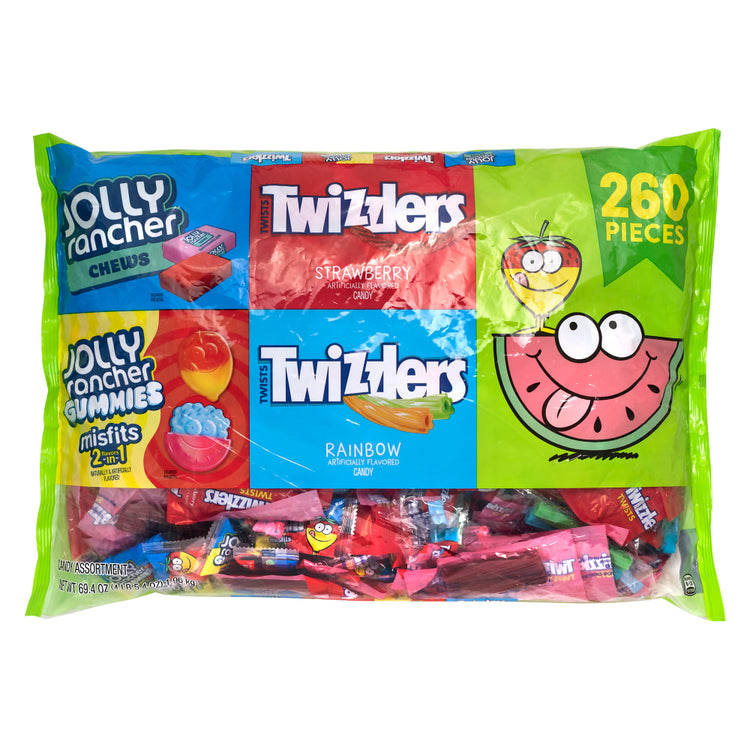 - Includes: Jolly Rancher chews candy, Jolly Rancher misfits gummies, Twizzlers rainbow twists chewy candy and Twizzlers twists strawberry-flavored chewy candy.