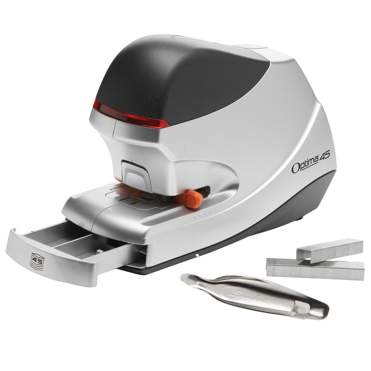 - Value pack includes the Optima® 45 Electric Stapler, Optima® High Capacity Staples and staple remover.