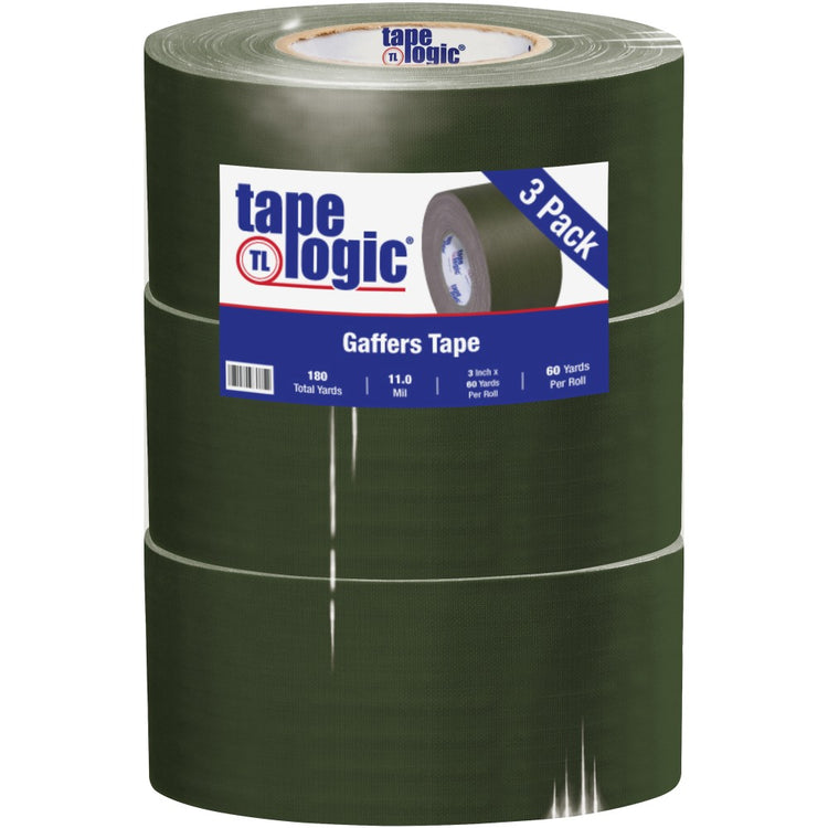 Tape Logic Gaffers Tape, 3in x 60 Yd., 11 Mil, Olive Green, Case Of 3 Rolls
