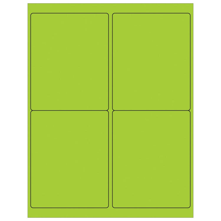 Tape Logic Permanent Labels, LL181GN, Rectangle, 4in x 5in, Fluorescent Green, Case Of 400