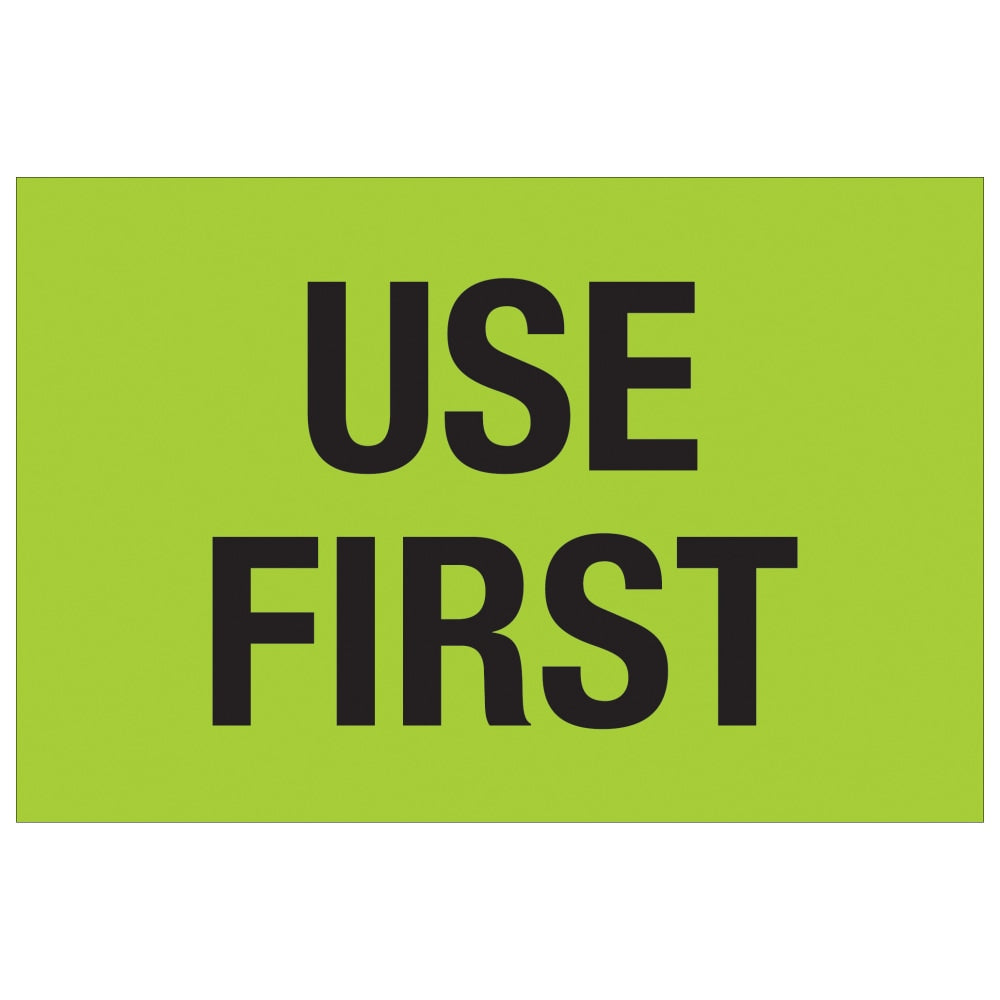 Tape Logic Preprinted Special Handling Labels, DL1136, Use First, Rectangle, 2in x 3in, Fluorescent Green, Roll Of 500