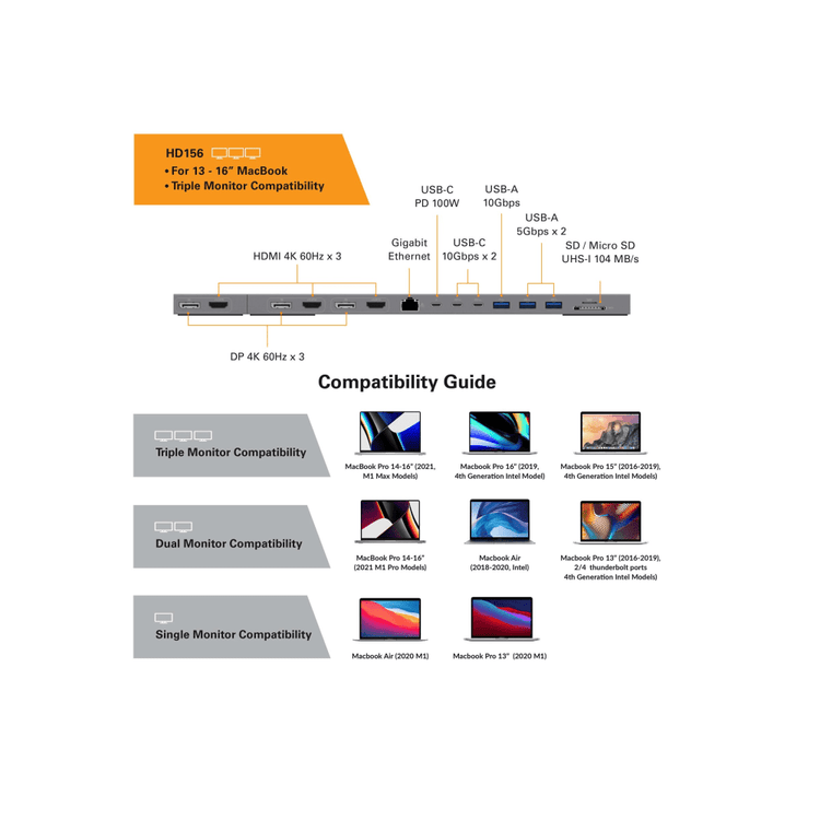 - Compatible with MacBook Air/Pro 2016-2021 13” to 16” and Windows PC’s supporting MST.