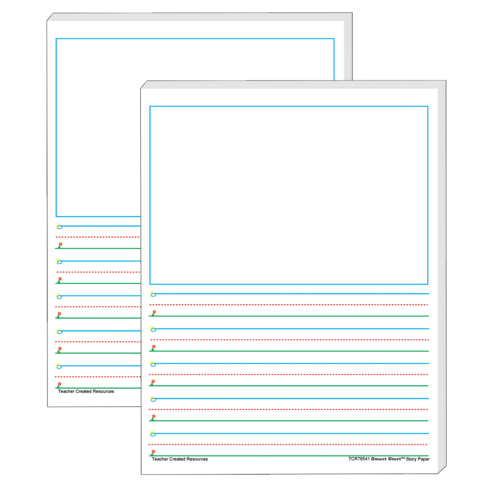 Teacher Created Resources Smart Start 1-2 Story Paper, 8-1/2in x 11in, Primary Rule, White, 100 Sheets Per Pack, Set Of 2 Packs