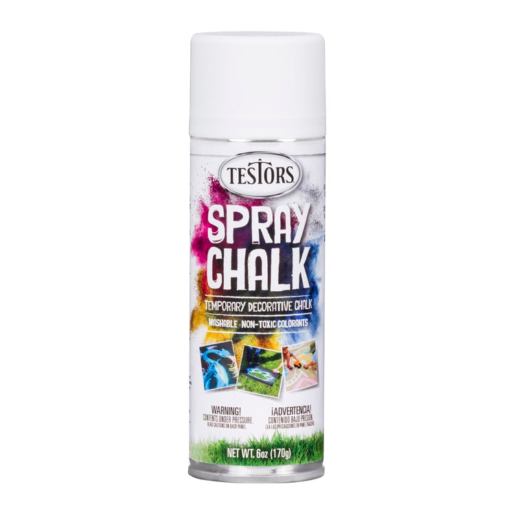 Grab some Testors Spray Chalk and let creativity shine. This decorative spray paint can be applied to sidewalks and driveways as well as grass, snow and other surfaces, and it's easy to wash away with water.
