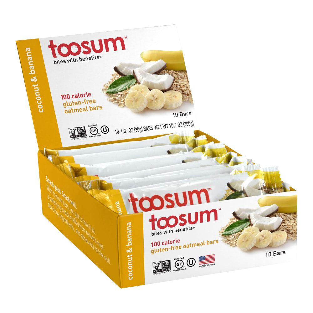 Toosum Healthy Foods Oatmeal Bars, Coconut and Banana, 1.07 Oz, Pack Of 20 Bars