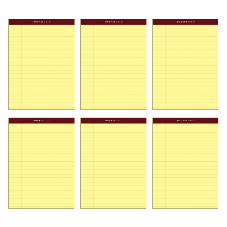 TOPS Docket Gold Premium Writing Pads, 8 1/2in x 11 3/4in, Legal Ruled, 50 Sheets, Canary, Pack Of 6 Pads