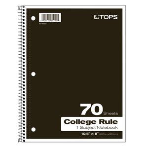 Tops 1-Subject Notebooks feature a light-blue college ruling, 3-hole punched edge, and Letr-Trim perforation for quick sheet removal. They fit into most backpacks, purses or totes.