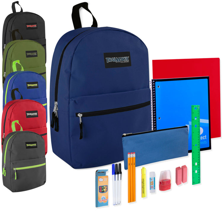 Trailmaker Backpack And 20-Piece School Supply Set, 6 Assorted Colors, Pack Of 24 Sets