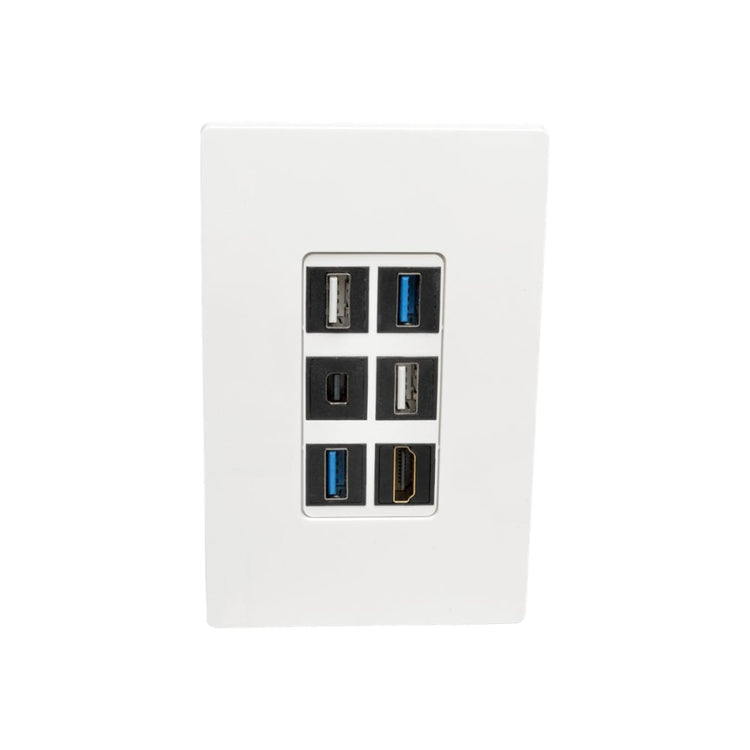Tripp Lite Single-Gang 6-Port Wall Plate Keystone Cat5/Cat6 USB HDMI Dport RCA - Faceplate - white - 1-gang - 6 ports - TAA Compliant