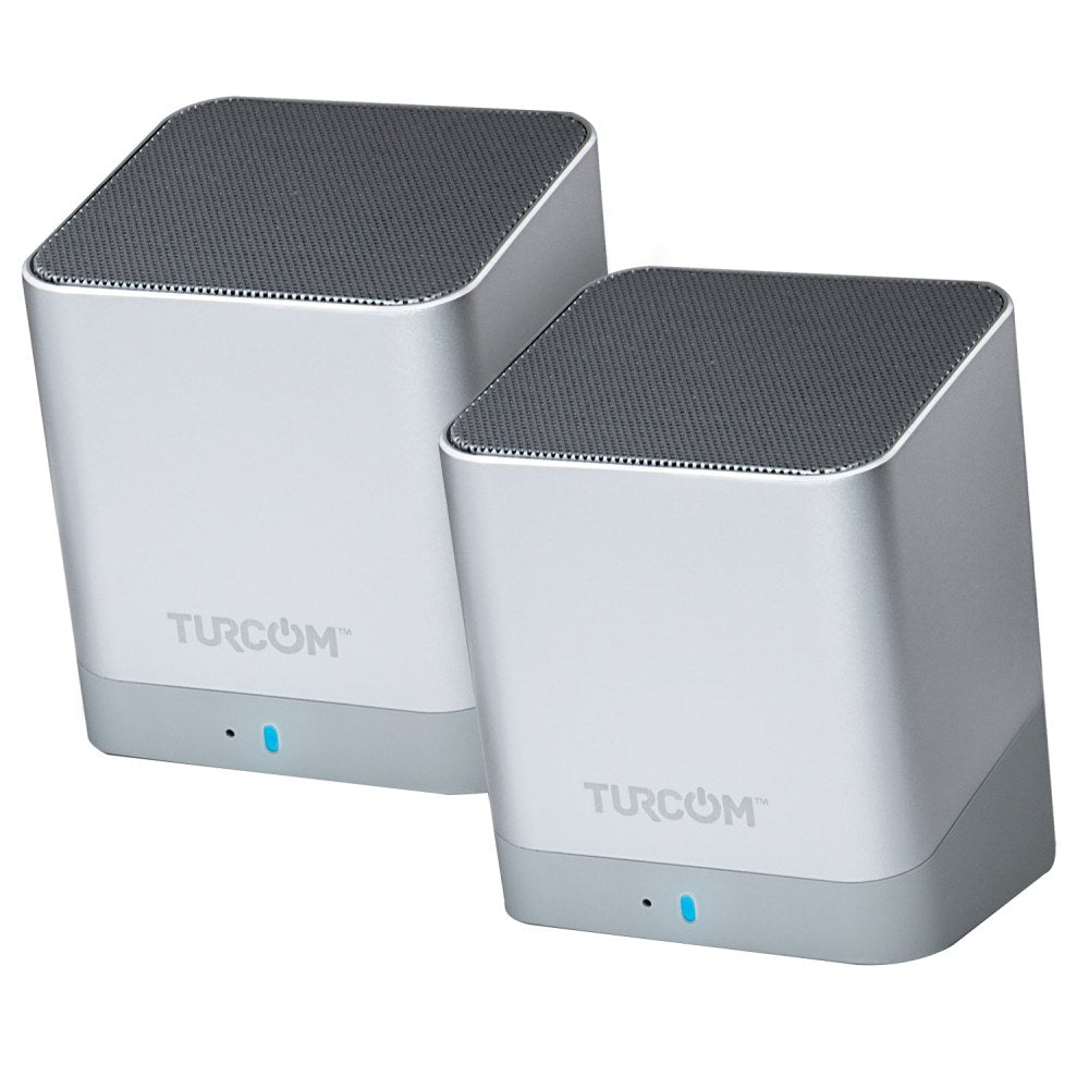 Turcom Wireless Bluetooth 2-Channel Mini PC Speaker Set, Silver, TS-459