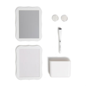 - Includes a magnetic utility cup, a dry-erase board, a magnetic mirror, 2 magnets and a black ink dry-erase marker.