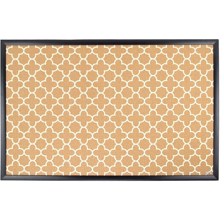 U Brands Fashion Cork Bulletin Board, 35in X 23in, Black Wood Frame