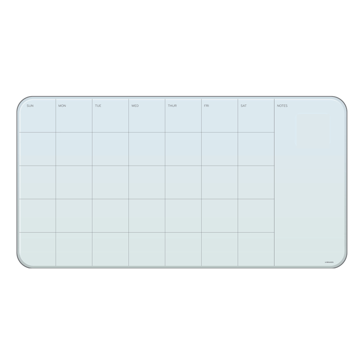 U Brands Frameless Magnetic Cubicle/Wall Glass Dry-Erase Monthly Calendar Board, 23in X 12in, Frosted White
