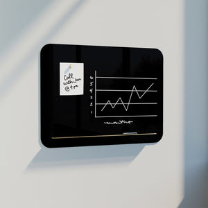 Black dry-erase magnetic glass board allows for a clean, easy viewing area. Tempered black magnetic glass dry-erase surface will never stain or ghost. Highest quality dry-erase surface available, great for heavy use.