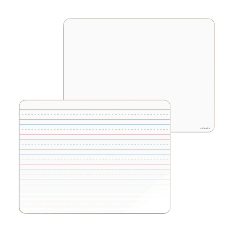 - Side one: lined to practice writing block letters or cursive. Side two: blank for drawing or other problem solving