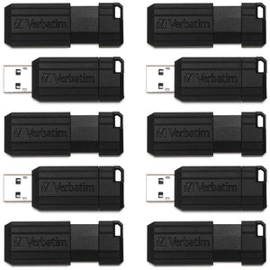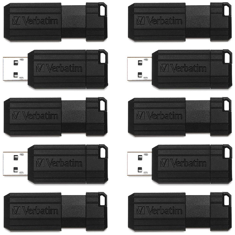 Verbatim PinStripe USB Flash Drive, 64GB, Black, Pack Of 10