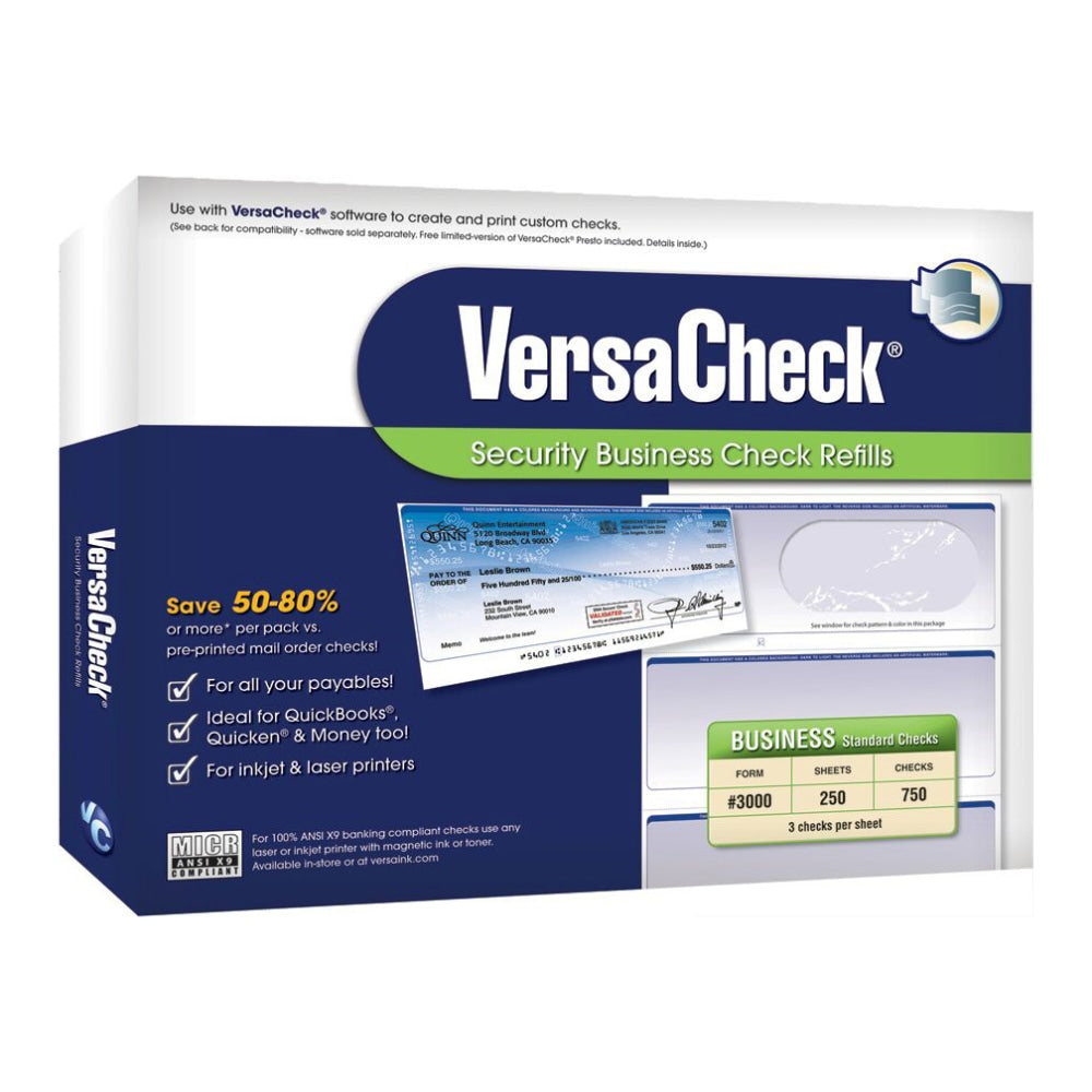 - Compatible with VersaCheck software products (except personal versions). Also works with QuickBooks®, Quicken®, MS® Money, MAS90, MYOB and more.