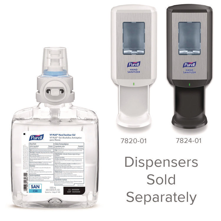 VF PLUS Hand Sanitizer Gel, 1,200 mL Refill Bottle, Fragrance-Free, For CS8 Dispensers, 2/Carton