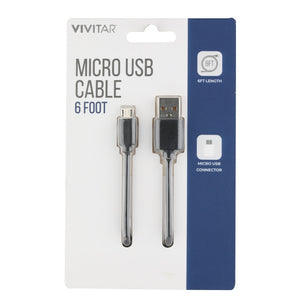 Vivitar USB-A To Micro USB Cable, 6ft, Black, NIL5006-BLK-STK-24