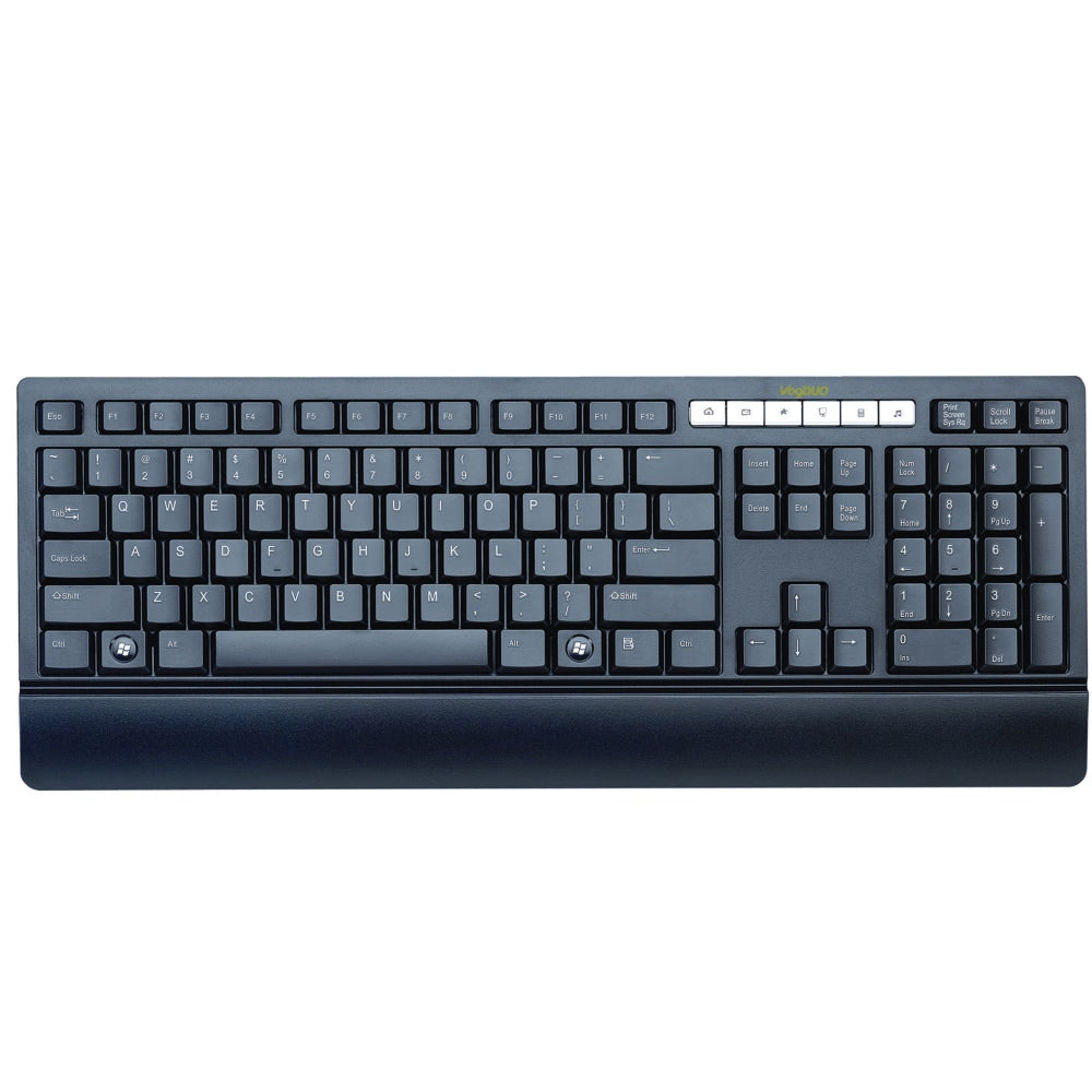 The VogDuo wireless keyboard has a slim profile with 104 keys and 6 multimedia keys. The nano size of the MK305 keyboard in black makes it easy to pack while you are traveling.