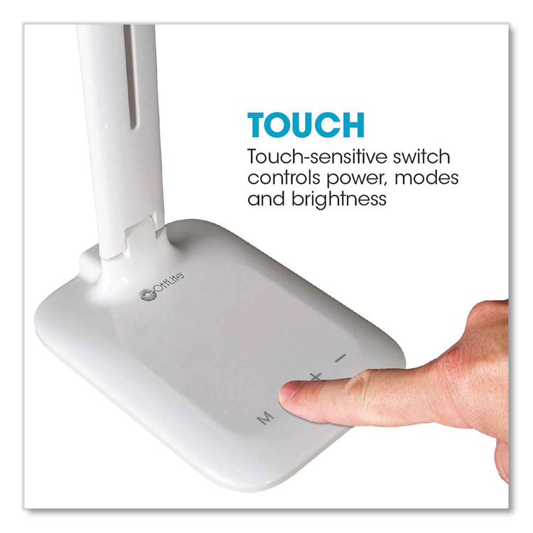 See every color and detail with ease with the OttLite Slimline LED Desk Lamp. Trusted by people who love to sew and craft, OttLite's exclusive ClearSun natural daylight LED technology has a color rendering index of 95+ so you can select and match colors with total confidence. The Slimline LED Desk Lamp also features two additional color modes—warm white and bright white. With five brightness levels, select the brightness level that works best for your space. This sleek design features two points of adjustment so you can change position as you work from a height of 20.25" to 5".