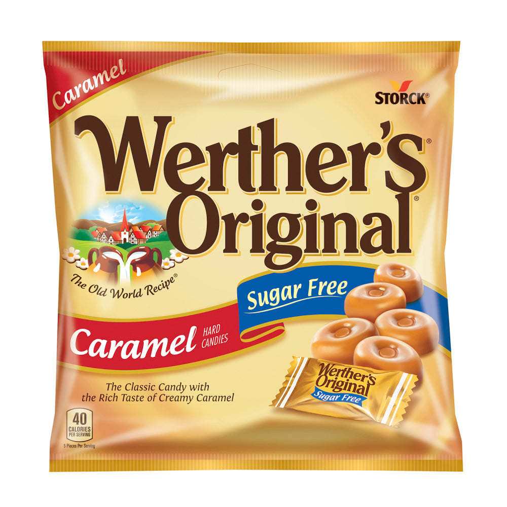 Werthers Original Sugar-Free Caramel Hard Candies, 1.46 Oz, Pack Of 12 Bags