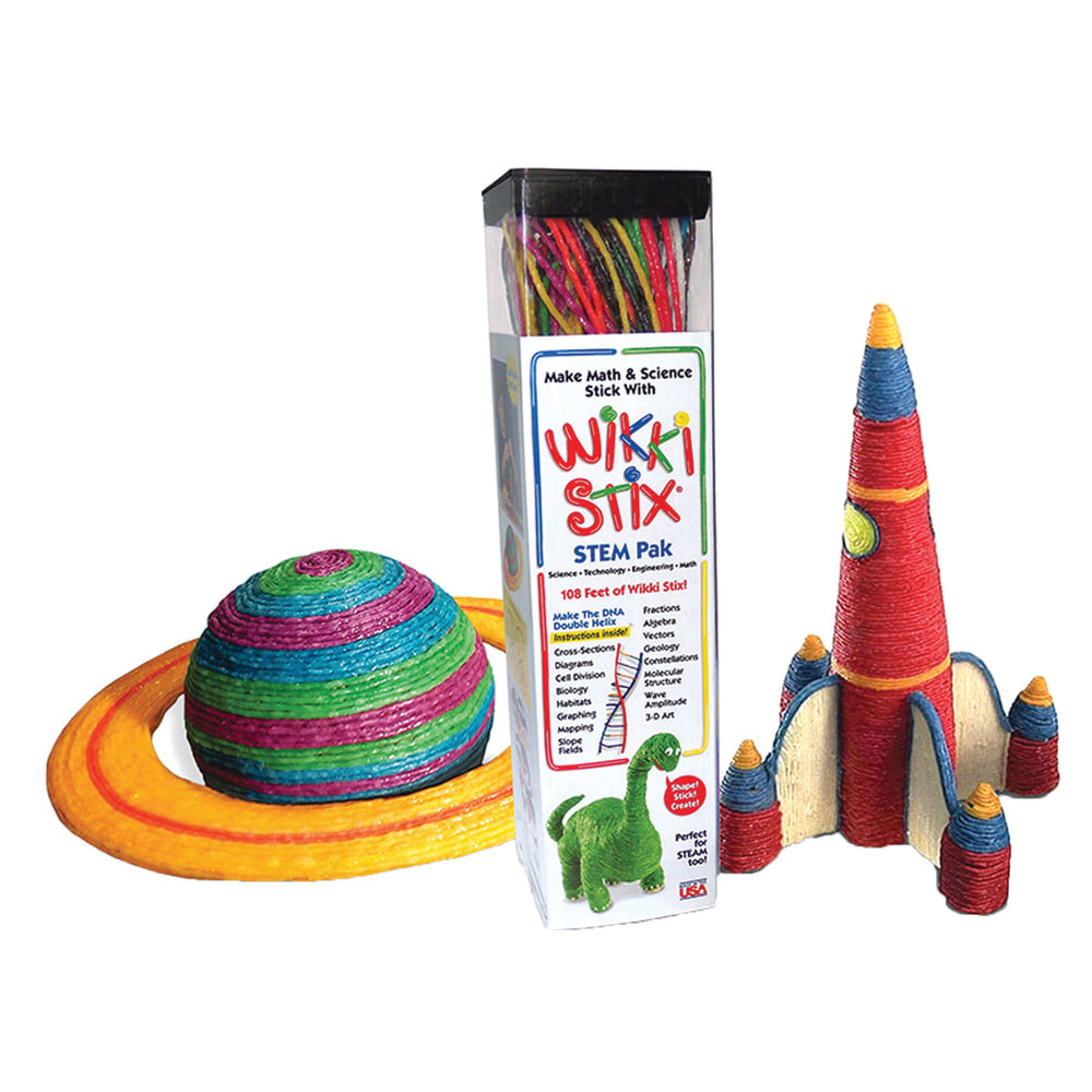 - STEM Pak includes 108' of Wikki Stix in 9 colors, a 4-panel DNA Double Helix making guide, 20 activity images and more.
