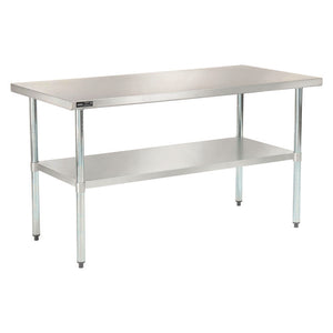 Our stainless steel work tables with an undershelf provide a practical and organized workspace solution. The heavy-duty, spacious work surface is crafted from stainless steel with a range of thicknesses and is supported by heavy-gauge channel supports and tubular legs. The convenient undershelf is designed to keep tools, equipment, and supplies organized and easily accessible to boost efficiency.