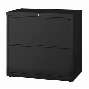 - 30"W, 2-drawer steel lateral file cabinet features levelers.