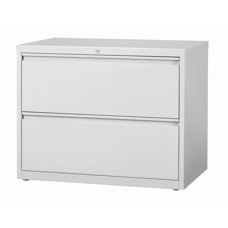 - 2-drawer steel lateral file cabinet includes hang rails.