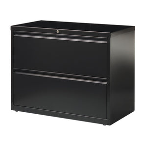 - WorkPro 42"W 2-drawer steel lateral file cabinet holds letter- and legal-size files.